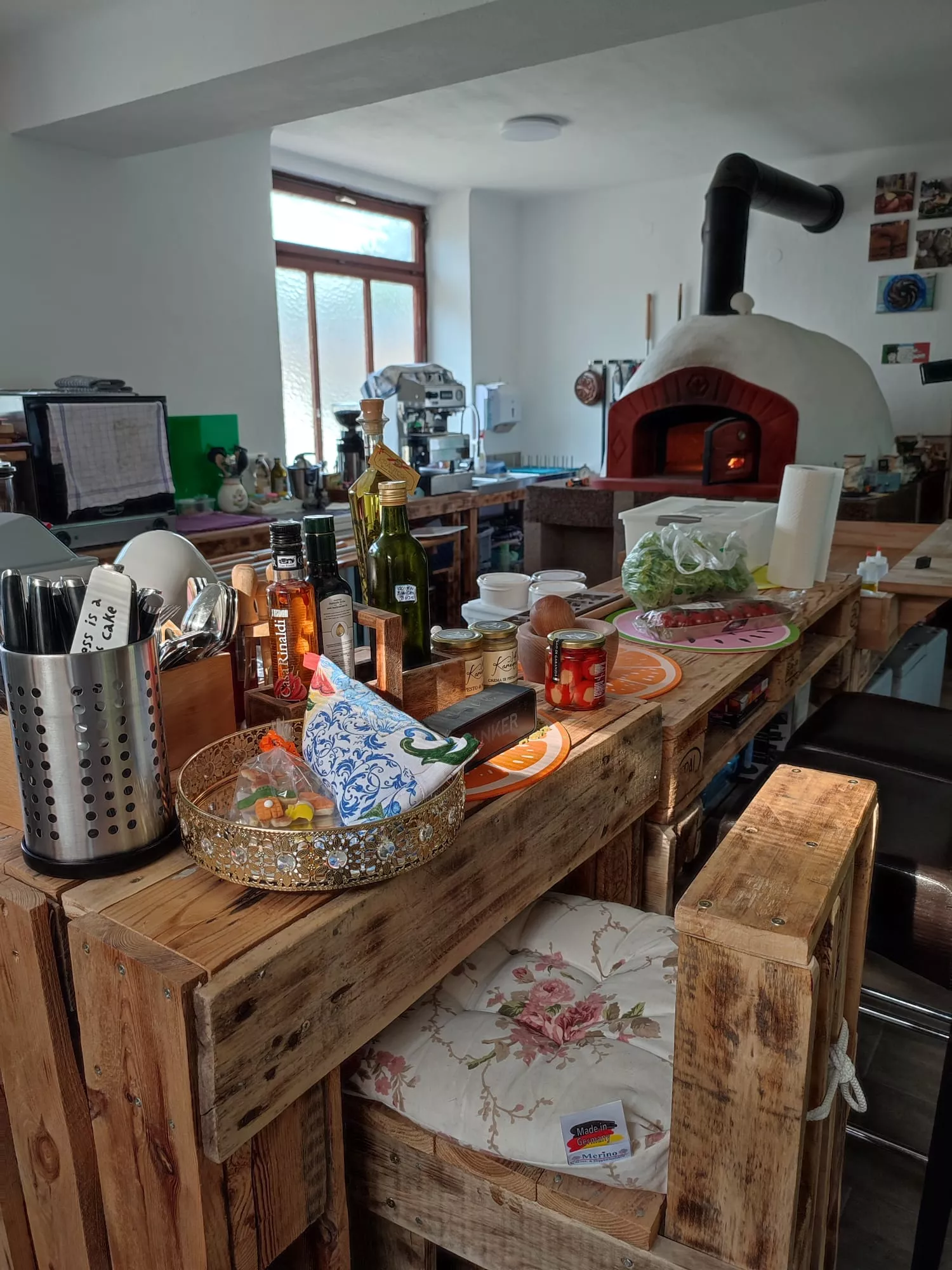 Sie erfahren wie Sie zum Beispiel Ciabatta, Brot, Hausbrot oder verschiedene Focaccia oder Taralli selbst backen können. Die ursprüngliche Verarbeitung und der Steinofen, den wir eigens dafür in unserer Küche eingebaut haben, werden Sie begeistern.